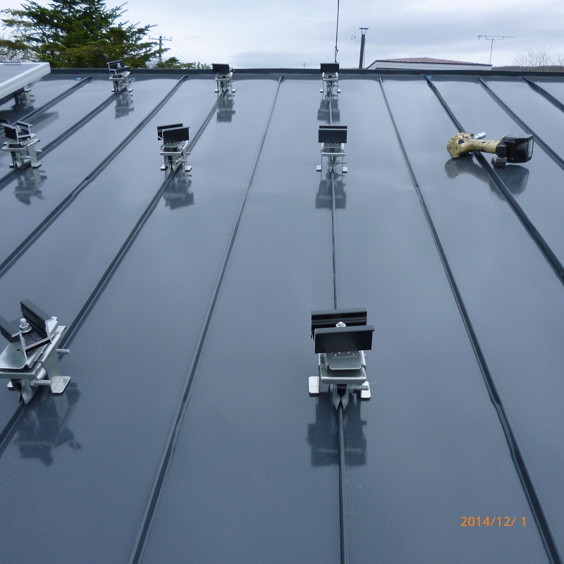 屋根に穴を開けない挟み金具使用
