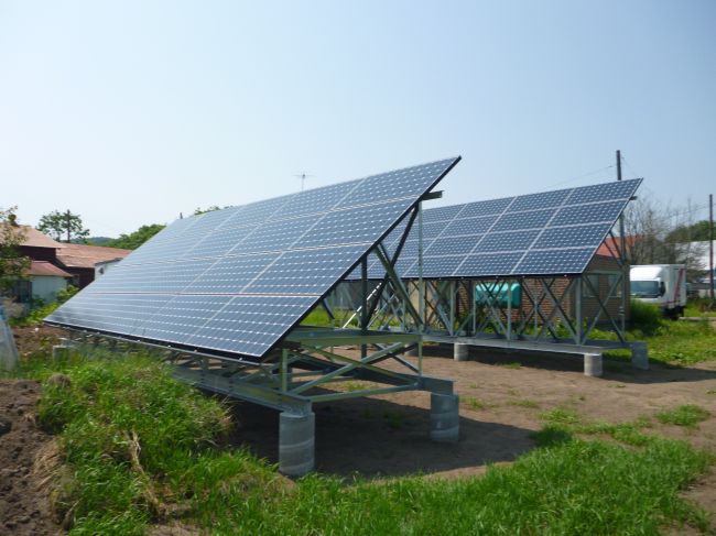 建物の屋根面にではなく、地面に設置しました。