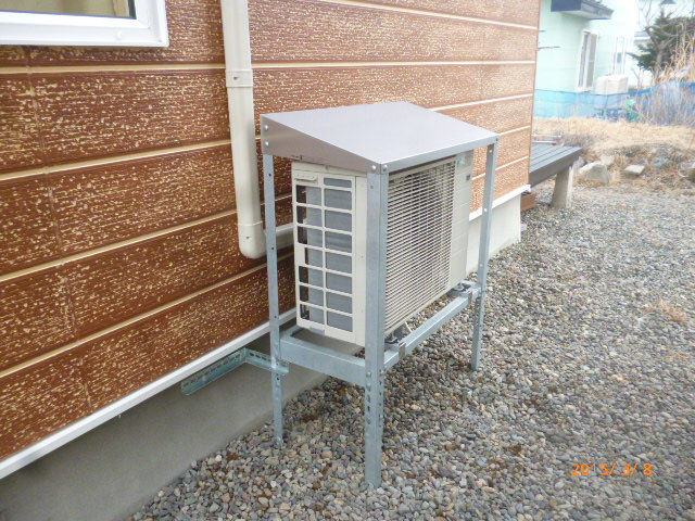 当社では室外機が傾かない様、家の基礎に金物でしっかり、固定します☆